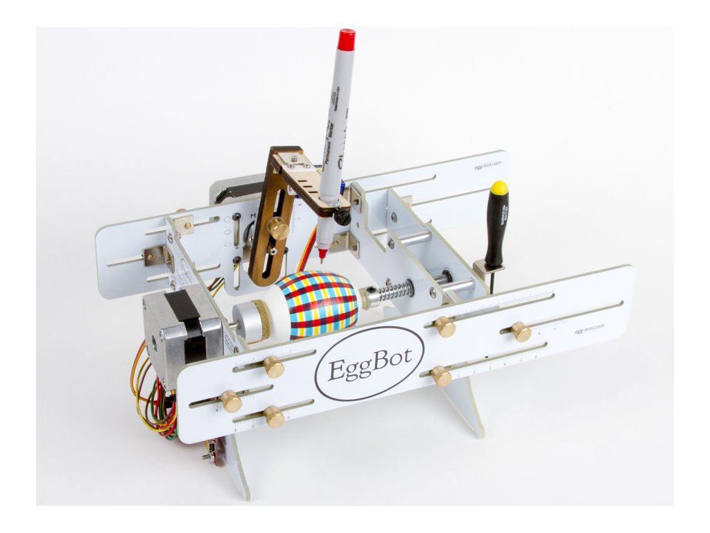 Robot EggBot je jednoduše nastavitelný a umožňuje kreslit a psát na všechny druhy věcí, na které to "normálně" není možné. Kreslí na věci od velikosti pingpongového míčku až do rozměru menšího grapefruitu (průměr věcí 3 ÷ 10 cm). Můžou to být vejce, ale také žárovka nebo vánoční baňka, malá dýně, golfový míček nebo s trochou snahy i sklenice na víno. A samozřejmě také vajíčka různých velikostí a barev...