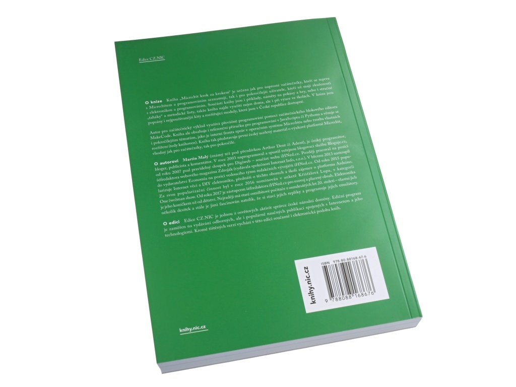 Autor knihy Martin Malý využívá pro začátečnický výklad převážně programování pomocí blokového editoru MakeCode. Kniha ale obsahuje i referenční příručku pro programování v JavaScriptu či Pythonu a věnuje se i pokročilejším tématům, jako je interní fronta zpráv v operačním systému Micro:bitu nebo tvorba vlastních rozšíření (tedy knihoven). Kniha Micro:bit krok za krokem představuje první český ucelený materiál o výukové platformě Micro:bit, vhodný jak pro začátečníky, tak pro pokročilé.