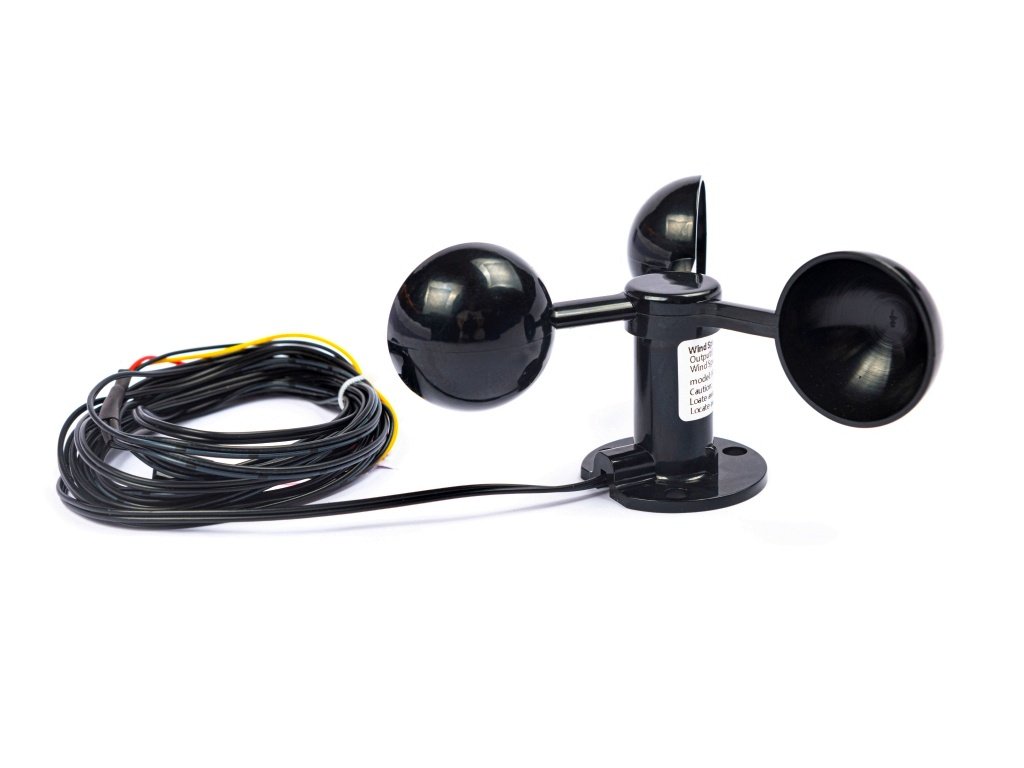 - Díky jednoduchému tvaru (výška cca 6,5 cm, průměr otáčení cca 14 cm) se senzor snadno integruje do různých konstrukcí – na stožár, rám meteostanice nebo model.