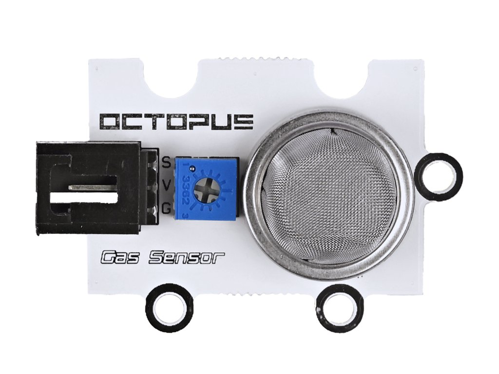Octopus čidlo hořlavých plynů a kouře MQ-2 je analogový senzorový modul z řady Octopus Electronic Bricks, který slouží k detekci kouře a je vhodný i pro experimenty se sledováním hořlavých plynů. Výrobce u něj uvádí vysokou citlivost, rychlou odezvu a možnost nastavení citlivosti potenciometrem, takže se dobře hodí pro výukové úlohy, demonstrační měření i jednoduché reakce na změnu prostředí.
