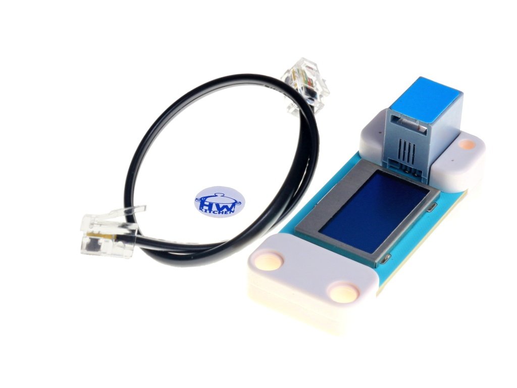 PlanetX OLED displej a další PlanetX moduly je velmi snadné použít a zapojit v projektu. Stačí je propojit s řídící deskou NEZHA pomocí dodaných káblíků s konektorem RJ11. Barva konektoru na elektronickém modulu a řídícím modulu NEZHA musí být stejná. Konektor RJ11 navíc není možné zapojit špatně. Správnou polaritu zajišťuje uzpůsobení konektoru a elektrické propojení je pojištěné zámkem na konektoru RJ11. To je takové to příjemné kliknuté po zastrčení konektoru do zdířky desky NEZHA.