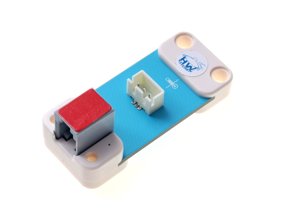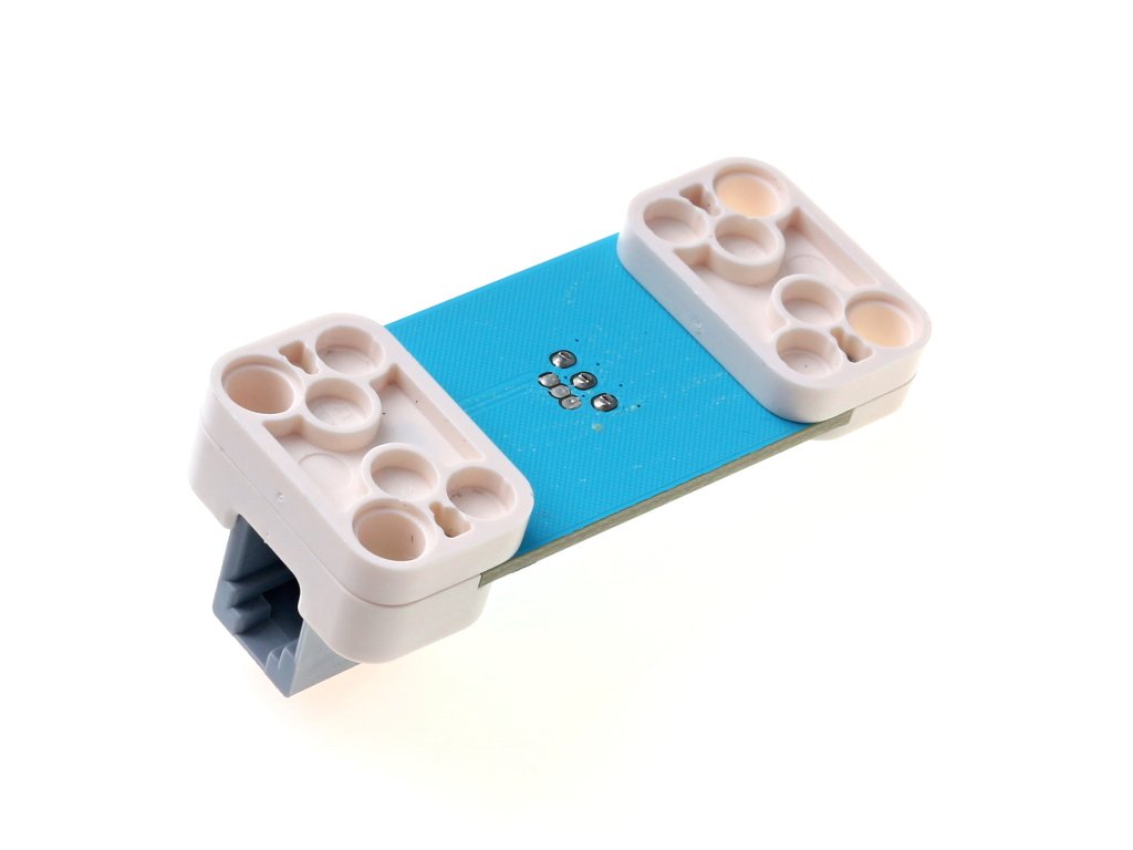 Modul je vybaven konektory pro připojení teplotního čidla a kablíku pro konektor RJ11. Nechybí ani upevňovací otvory pro snadné připevněni modulu ke kostkám LEGO®.