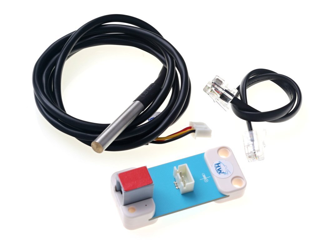 Vodotěsné teplotní čidlo najde uplatnění pro měření teploty venkovního vzduchu, bazénové vody, půdy, nápojů, chemikálií a v dalších zajímavých microbit projektech. Snímač teploty je vybaven destičkou pro připojení na standardní konektor RJ11. Pracuje s napětím od 3 V, což vyhovuje přesně použití s deskou microbit.