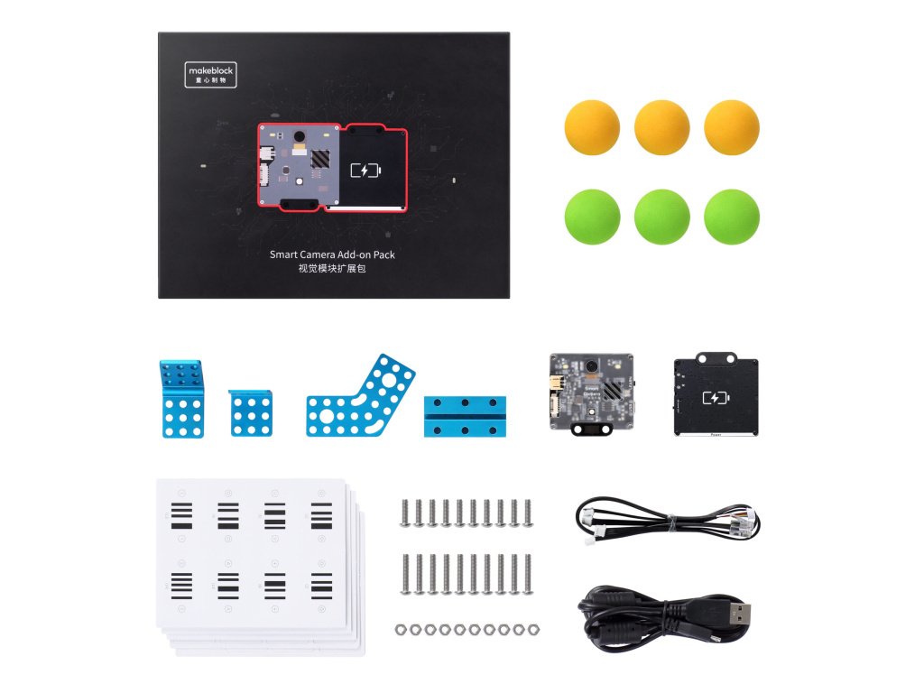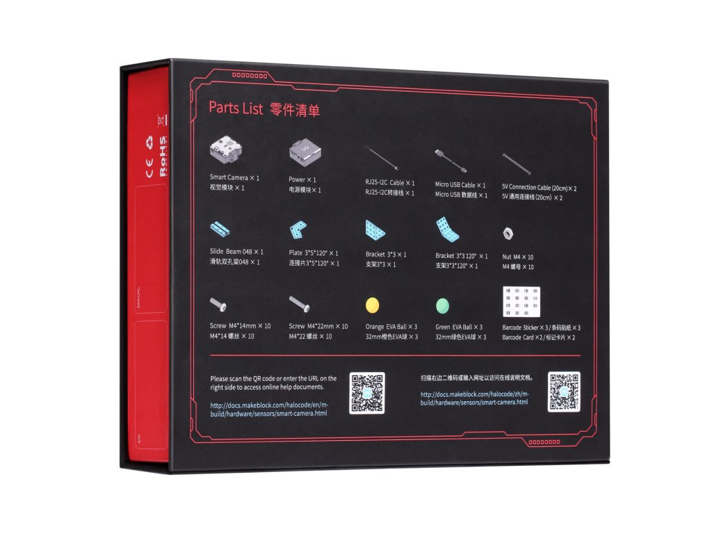 Chytrá kamera pro mBot nebo mBot2 bude také schopna sledovat čáru a zároveň rozpoznávat mnoho čárových kódů dodaných v krabici, díky čemuž bude ještě vnímavější na své okolí. Programování se provádí pomocí software mBlock 5 (zdarma) a rozšíření "Smart Camera", které si jednoduše přidáte do mBlock 5. V případě mBot1 je třeba připojit baterii mBuild k chytré kameře a poté kameru k řídící desce mBot prostřednictvím konektoru RJ25. Smart Camera Add-on Pack je kompatibilní s mBot2 & CyberPi, mBot, mBot Ranger.